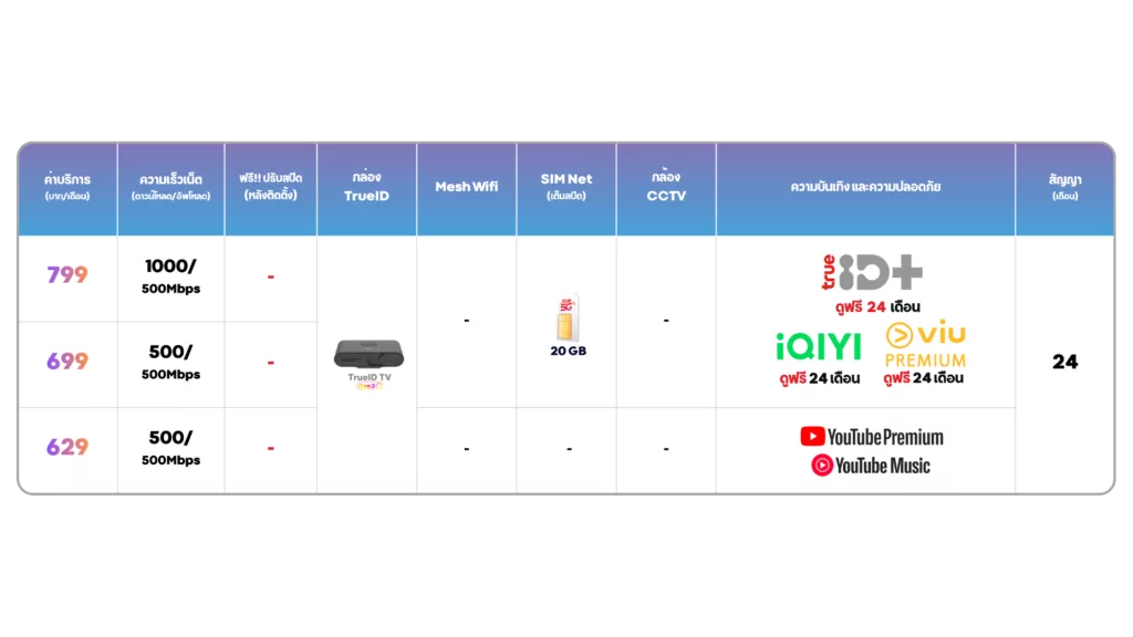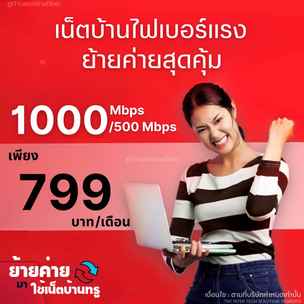 เน็ตบ้านทรูความเร็วแรง เสถียร ตอบโจทย์ทุกการใช้งาน อุปกรณ์อัจฉริยะครบครัน ช่วยให้ชีวิตสะดวกสบายยิ่งขึ้น โปรโมชั่นราคาพิเศษ คุ้มค่ากว่าใครสิทธิพิเศษอื่นๆ อีกมากมาย