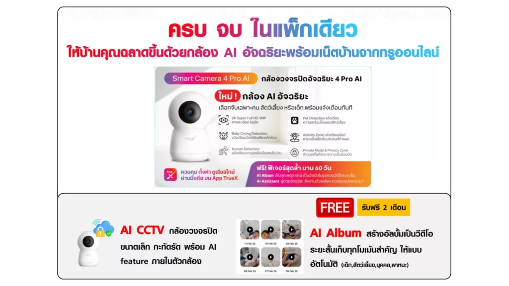 เน็ตบ้านทรู พร้อมกล้องวงจรปิด ฟรี Cloud บันทึกย้อนหลัง 7 วัน ปลอดภัยครบครัน
